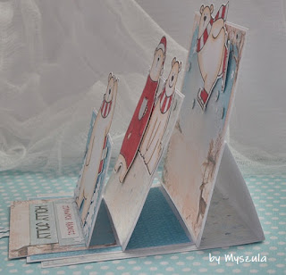 Obrazek piękności niebywałej. Dobrze znany, wciąż wdzięczny w oglądaniu i wytwarzaniu. Słodziak. Miśku w czerwieni. To wpływy Uli z innej zabawy. Leży już u mnie, a będzie i kilka tygodni. Na zagospodarowanie czekał. Się doczekał, owszem. Jednak to co stworzyłam karane być powinno. Jak można taki ładny haft tak brzydko i bezsensownie oporządzić?! Przyjdzie za demontaż się brać. Póki co jest tak: